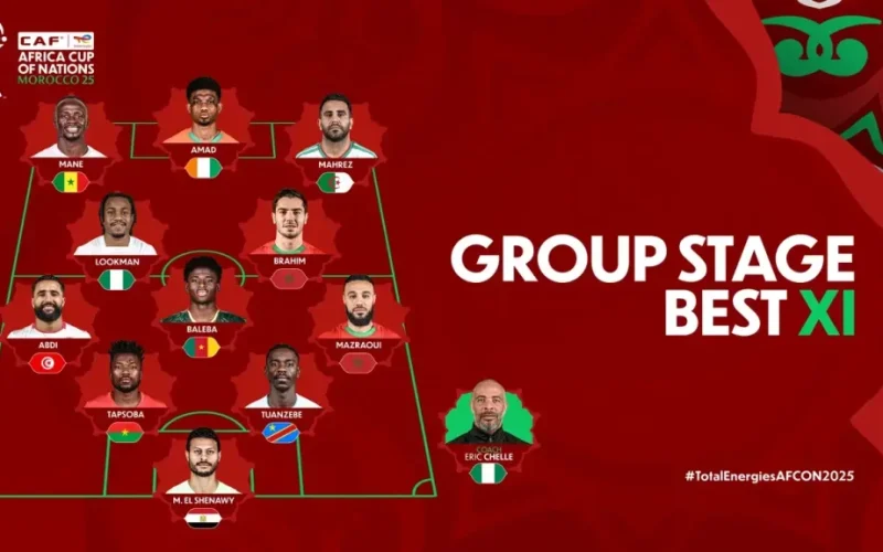 The list of the Best XI of the group stage of the 2025 Africa Cup of Nations (AFCON) and coach is out, with Nigeria getting two spots: Ademola Lookman and Coach Eric Chelle the Best XI list was released by the organisers of the AFCON, the Confederation of African Football (CAF) on Friday.