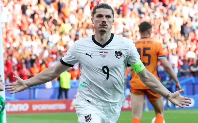 Five minutes later, Austria scored their third goal. Christoph Baumgartner teed up Marcel Sabitzer inside the box and he slammed the ball into the roof of the net and past Bart Verbruggen.