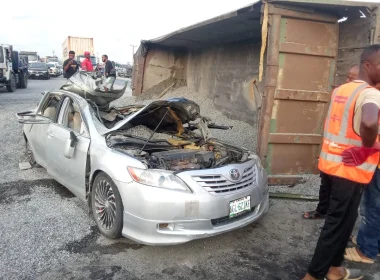 Man dies, wife injured as truck crushes car in Lagos