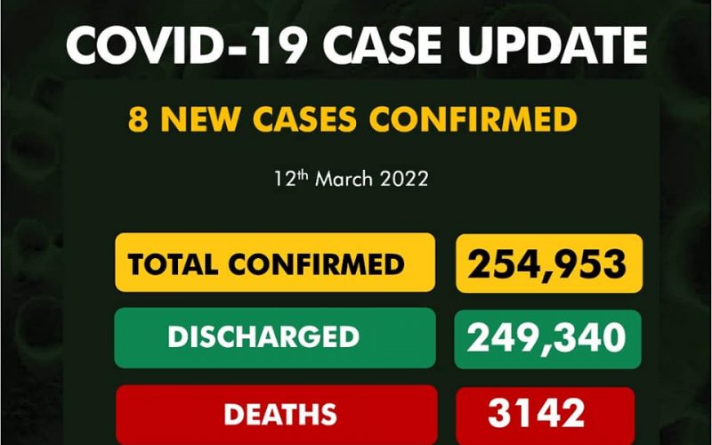 On the 12th of March 2022, 8 new confirmed cases were recorded in Nigeria