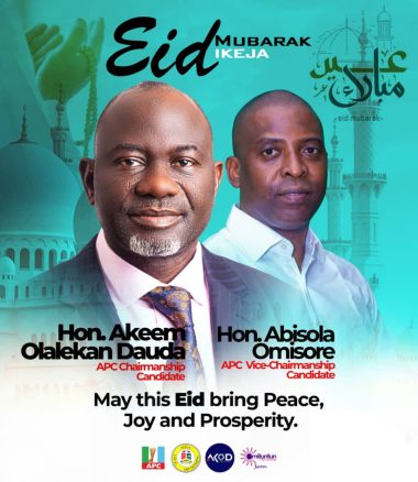 The All Progressives Congress (APC) Chairmanship and Vice Chairmanship Candidates for Ikeja Local Government, Hon. Akeem Olalekan Dauda (AKOD) and Hon. Abisola Omisore (Omituntun), extend warmest felicitations to the Muslim Ummah in Ikeja and across Nigeria as they join the global Islamic community in celebrating the 2025 Eid-ul-Adha.