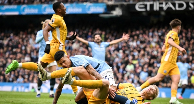 Erling Haaland and Omar Marmoush put City in front, but high-flying Brighton extended their unbeaten run to seven games thanks to Pervis Estupinan’s free-kick and an Abdukodir Khusanov own goal.