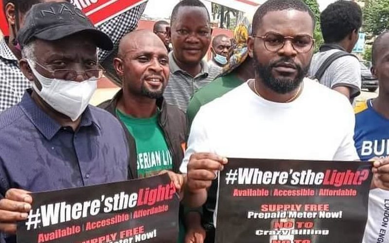 Human rights lawyer, Femi Falana (SAN), and his musician son, Folarin, aka Falz, along with scores of Lagosians took to the streets on Monday to protest against the insecurity and poverty ravaging the country.