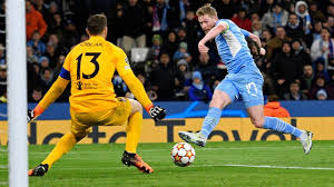 Manchester City host Atletico Madrid in the first leg of their Champions League quarter final at the Etihad Stadium. Manchester City Kevin De Bruyne shoots past Atletico Madrid’s Jan Oblak to score the winning goal, Manchester City worked hard to earn a 1-0 win in their Champions League quarter-final first leg against Atletico.