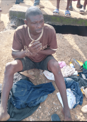 Raji, who claimed to be in his thirties from Ilesa, Osun State, was lurking in the large drain along the road that leads to the popular ‘Oko filling’ when one of the residents sighted him around quarter to six in the morning.