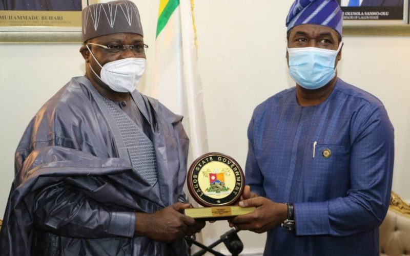L-R:  Chairman, House of Representatives Committee on Tertiary Education & Services, Hon. Aminu Suleiman and the Lagos State Deputy Governor, Dr. Kadri Obafemi Hamzat during a courtesy visit by the committee members to the Deputy Governor in his Office on Thursday, April 8, 2021.