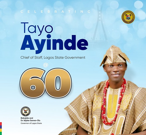 Lagos State Governor, Babajide Sanwo-Olu, has congratulated his Chief of Staff (COS), Tayo Ayinde, on the occasion of his 60th birthday, describing him as a dependable, worthy and trusted partner in the ‘Greater Lagos’ agenda.