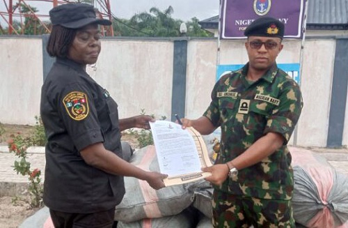 Receiving the sacks, Mrs Ogomegbunem Nwadui, Deputy Commander,Narcotics, who represented Mr Owen Dinneys, the Area Commander, Seme Special Command of NDLEA, promised that an investigation would commence to unravel those behind the seized Items.