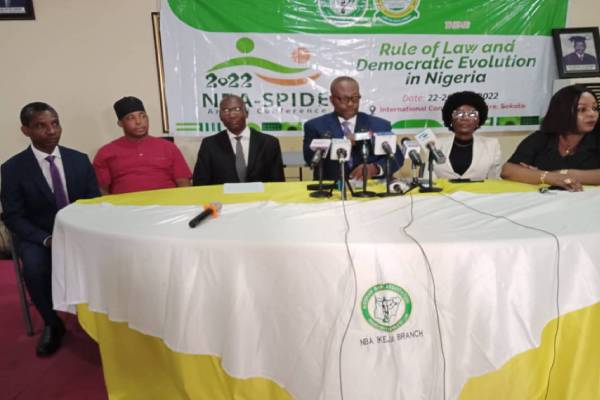 The gathering was geared at updating journalists on NBA-SPIDEL’s forthcoming national conference to be held in Sokoto State between May 22 to 26, 2022, on the theme: Rule of Law and the Democratic Evolution in Nigeria”.