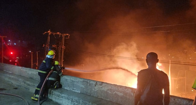 “The Lagos State Fire and Rescue Service is currently attending to a Fire resulting from a tanker accident outward Otedola bridge, Omole, Lagos at about 20:00 hours.