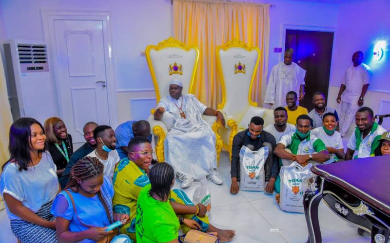 Ooni Adeyeye Enitan Ogunwusi Ojaja II and Titan Farms staff who visited him in Ile Ife