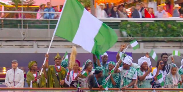 Flagbearer Tobi Amusan and Nigeria’s team captain Anuoluwapo Opeyori, led Nigerian delegation at a colorful and historic Paris 2024 Olympics opening ceremony on Friday night.