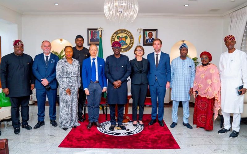 Lagos State Governor, Mr. Babajide Sanwo-Olu (fifth left); the Ambassador of the Royal Kingdom of Norway, Mr. Knut Eiliv Lein (fourth right); Deputy Governor, Dr. Obafemi Hamzat (third right), followed by the Secretary to the State Government, Mrs. Folashade Jaji; Chief of Staff, Mr. Tayo Ayinde and others during a courtesy visit by the Norwegian Envoy, at the Lagos House, Marina, on Friday, November 19, 2021.