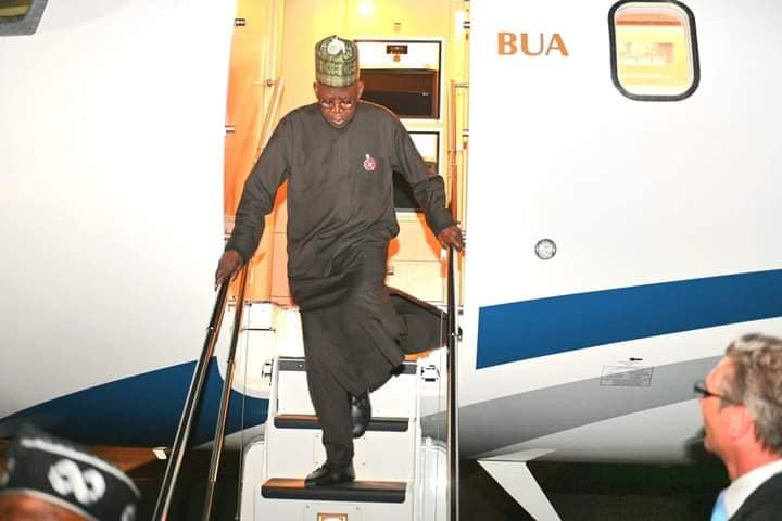 The All Progressives Congress, APC, Presidential Candidate, Asiwaju Bola Ahmed Tinubu has returned to Abuja on Monday, after performing lesser Hajj (Umrah) in the Kingdom of Saudi Arabia.
