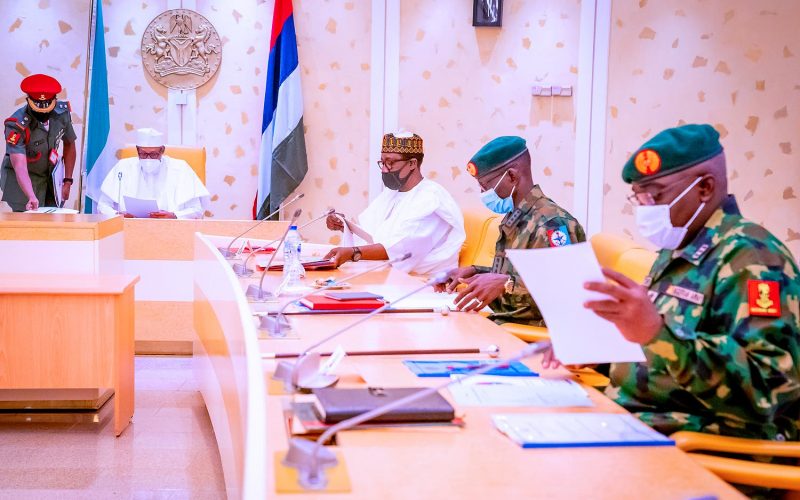 Others are Chief of Defence Staff, Gen. Lucky Irabor, Chief of Army Staff; Lieut.-Gen. Ibrahim Attahiru, Chief of Naval Staff; Vice Admiral Awwal Zubairu, Chief of Air Staff, Air Marshal Ishiaka Oladayo Amoo and the acting Inspector General of Police, Usman Baba.