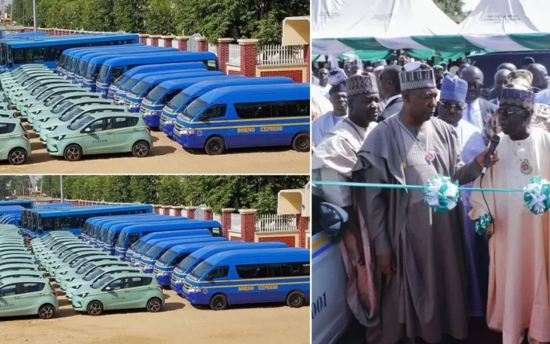 President Bola Tinubu on Monday in Maiduguri inaugurated 107 Mass Transit vehicles including 50 electric taxis purchased by the Borno State Government.