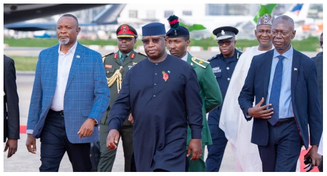 On arrival, Bio, who is also the Chairman of the Economic Community of West African States (ECOWAS) was given a Presidential ceremonial welcome.